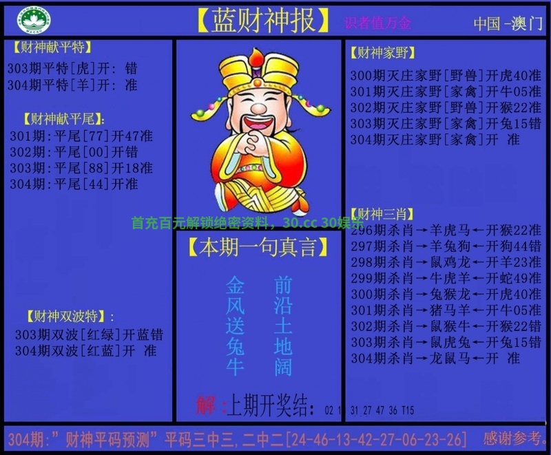 | 303期:三行中特(火木水)开:兔15准 |