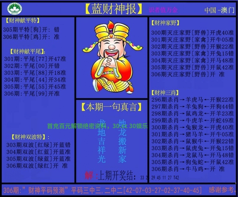 | 306期 | 马 | 0尾 | 11合 | 牛17 |